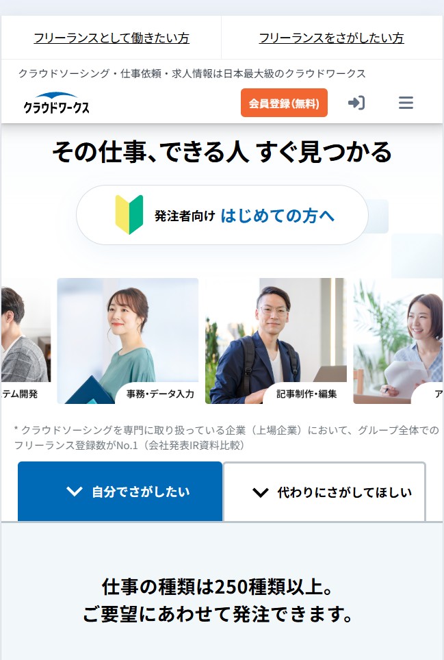 クラウドワークスは、在宅でできる案件が豊富なクラウドソーシングです。案件も多く、報酬の仮払いなど安心して取引しやすい仕組みがあります。
